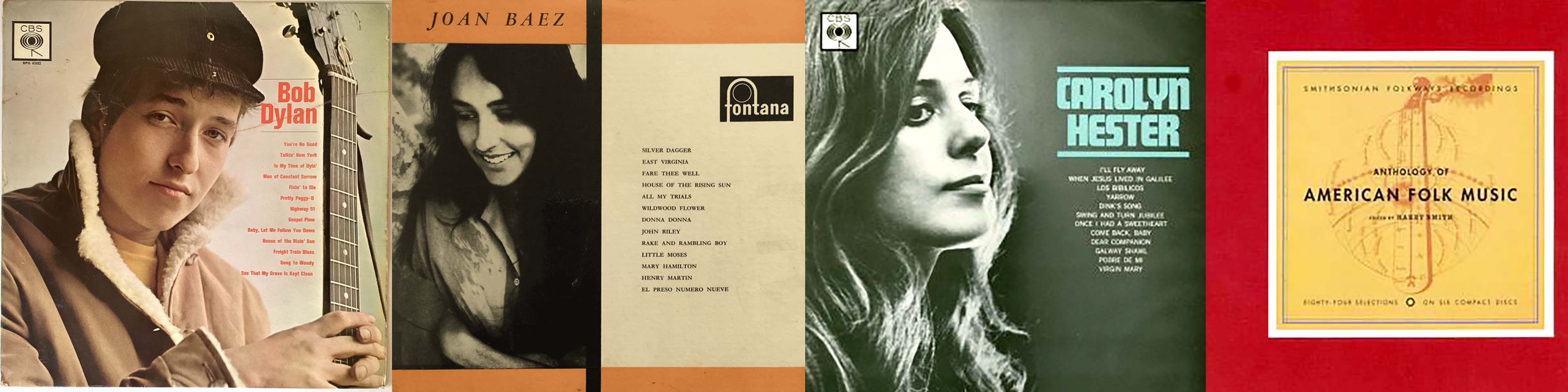 And that September meeting Pete Harris - who kindly loaned me half-a-dozen really lifelong-important albums (LPs) he had brought back from New York: the Bob Dylan debut album, and LPs by Joan Baez, Carolyn Hester and Huddie Ledbitter (Leadbelly) and Harry Everett Smith's Anthology of American Folk Music - the album that helped kick-start the NY folk revival of the late 1950s and early 1960s.