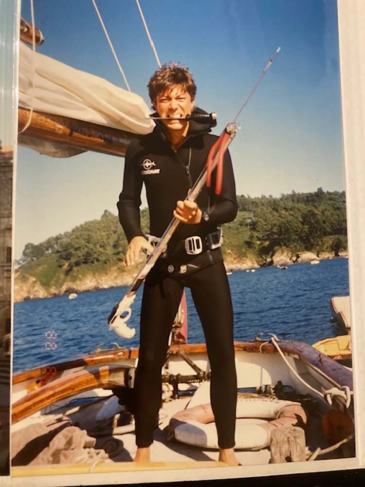 Briscoe on board Baroque, the gaff cutter he co-owned with James Sunderland, in Galicia in 1988.