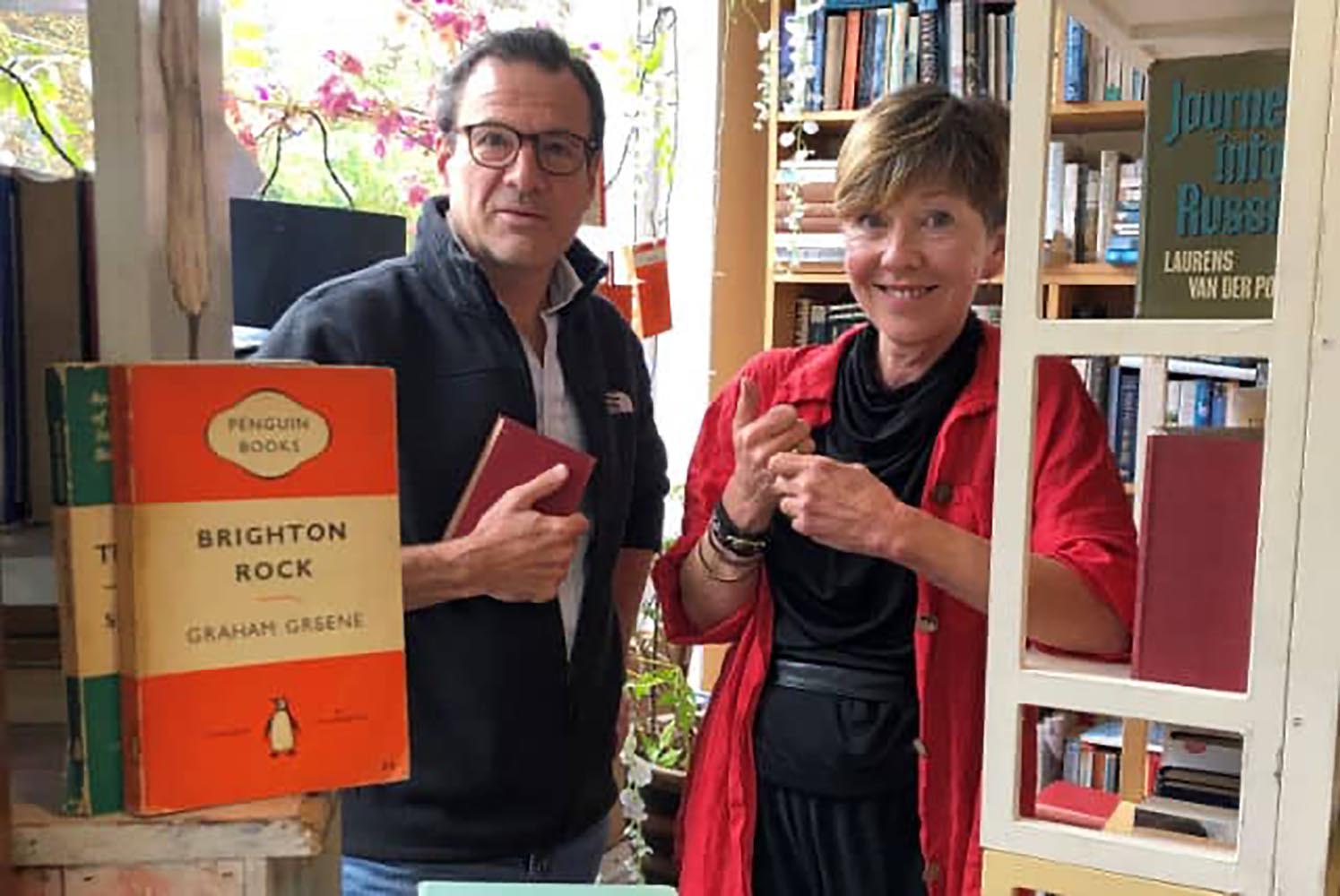 Bob Seely and Gail Middleton at Mrs Middleton's bookshop, Freshwater recently. Lots more to come on Gail, who has a creative background as a fashion-designer, knitware designer and author/illustrator and runs an importsnt bookshop in Freshwater.