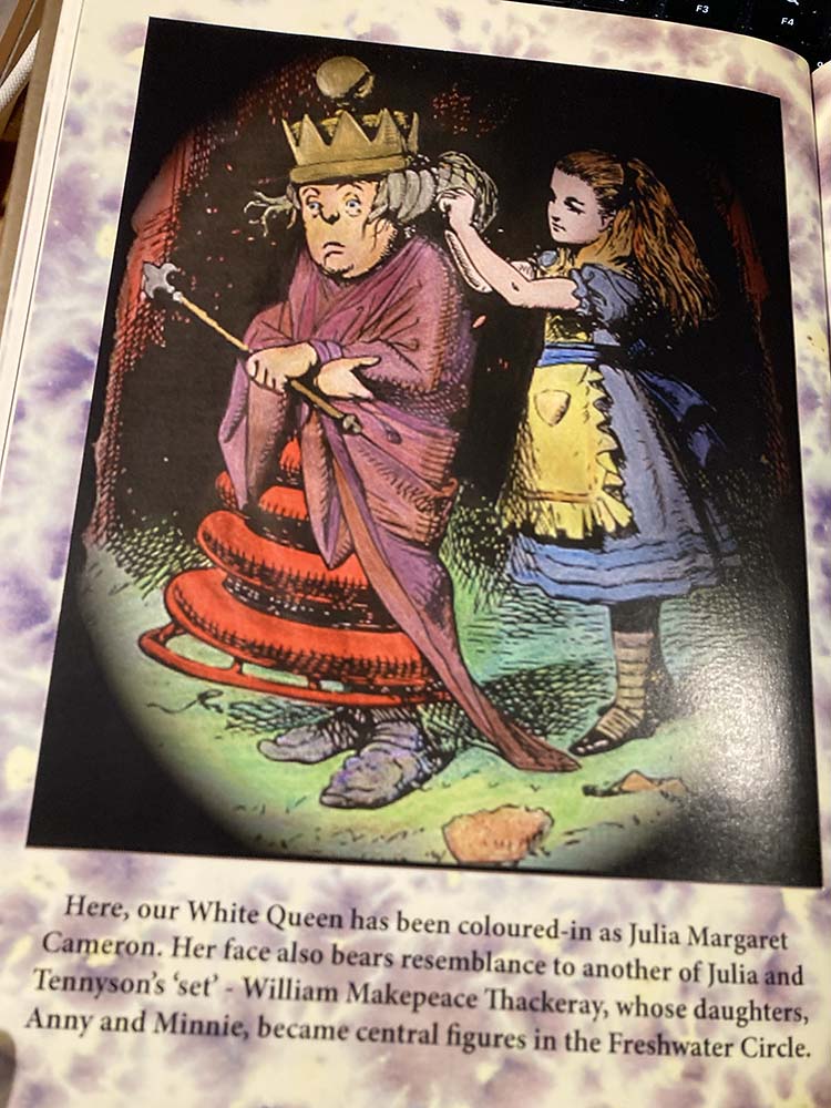 Gail, with a delightful mix of excellent scholarship and vivid imagination creates her book The Freshwater Circle Through the Looking Glass - and what Lewis Carroll Found There (2013) - and in a signed limited-edition of 500 too (I've got number 94). This blend of academic and local research and imaginative interpretation is her hallmark, as is her ability to repurpose and re-interpret in colour existing illustrations of Tenniel's and Dodgson's - the integration of Dodgson's experiences trying to infiltrate the Freshwater Circle, combined with his helping Julia Cameron learn the Wet Collodion process, and working on Through The Looking Glass, make this a wonderful fabrication...