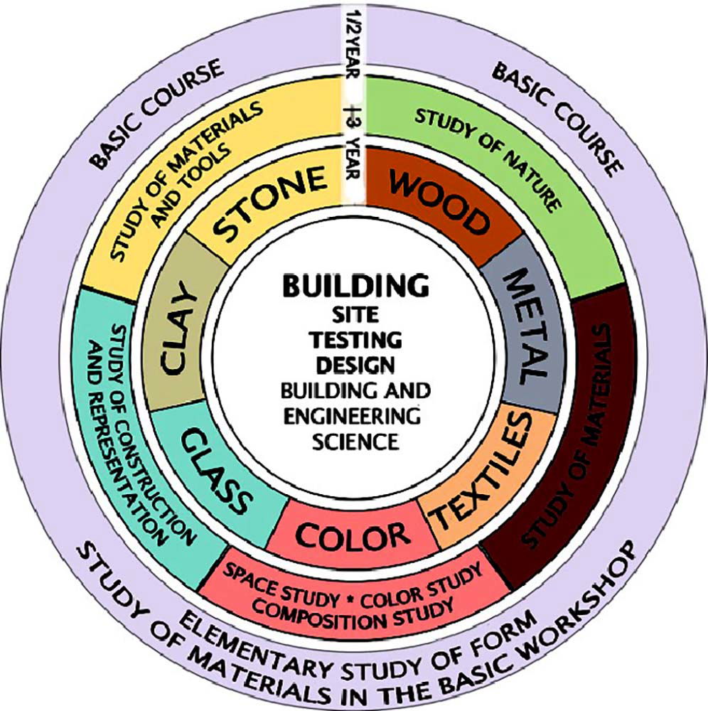 (Katherine Birbalsingh: apostle of child-centred education strategies. - and below: the Walter Gropius designed curriculum diagram for the Bauhaus Basic course - the 'workshop' as the basis for for a modern craft/design education)