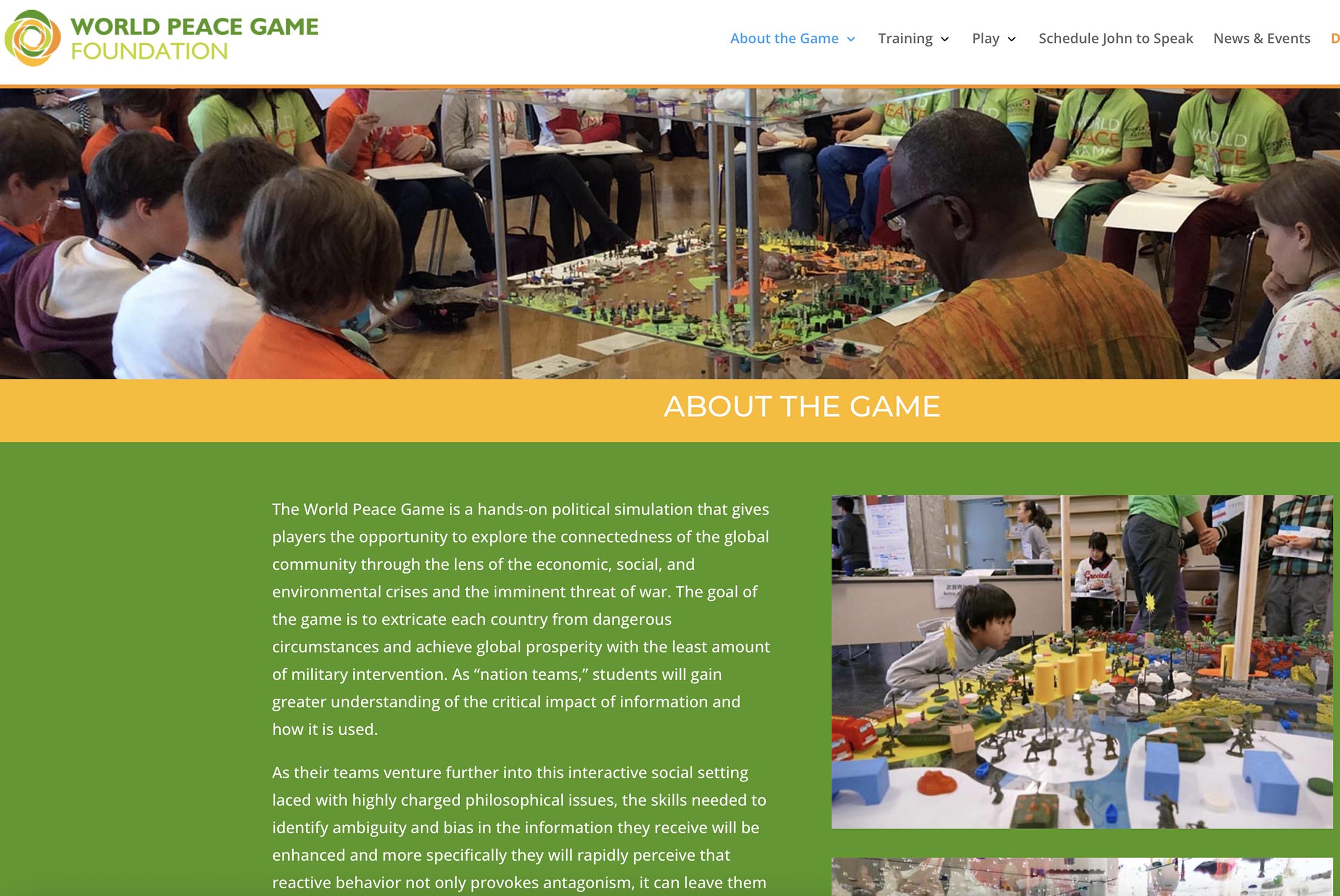 In 1978, over thirty years after Buckminster Fuller, the American teacher John Hunter devised a new version of Fullers World Game, entitled (just as Fuller's was at first: The World Peace Game: