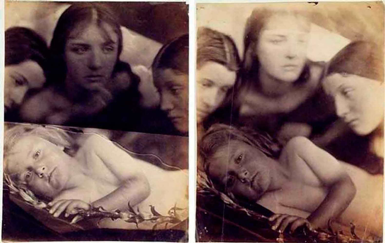 Back in the 1860s Rejlander and Peach Robinson were making exposures on glass plates (using the wet-collodion process) then presumedly making prints on paper, assembling these into their intended composition by careful cutting and pasting, then rephotographing the resulting image to make a final print. Armed with this experience – and his most successful composite Bringing Home the May – Peach Robinson went on to write The Pictorial Effect in Photography (1867), his manifesto for the Pictorialist movement that he founded. This was a reasoned argument to allow photographers the same freedom as painters to adjust and manipulate their images after exposure, much as a painter could retouch and revise an oil-painting over several months.”