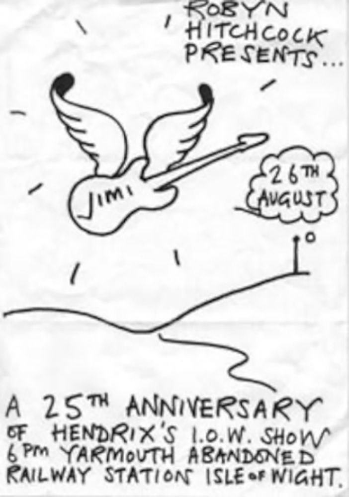 Robyn punctuated our lives really from then on and was our neighbour in Yarmouth and at Freshwater Bay. Robyn was full of stories, fantasies and initiatives - including the Jimi Hendrix Anniversary Show at Yarmouth Raileway Station (above). It was Robyn who first suggested a Freshwater Festival back in the 1990s, so I'm glad to add to his idea now in the 2020s...
